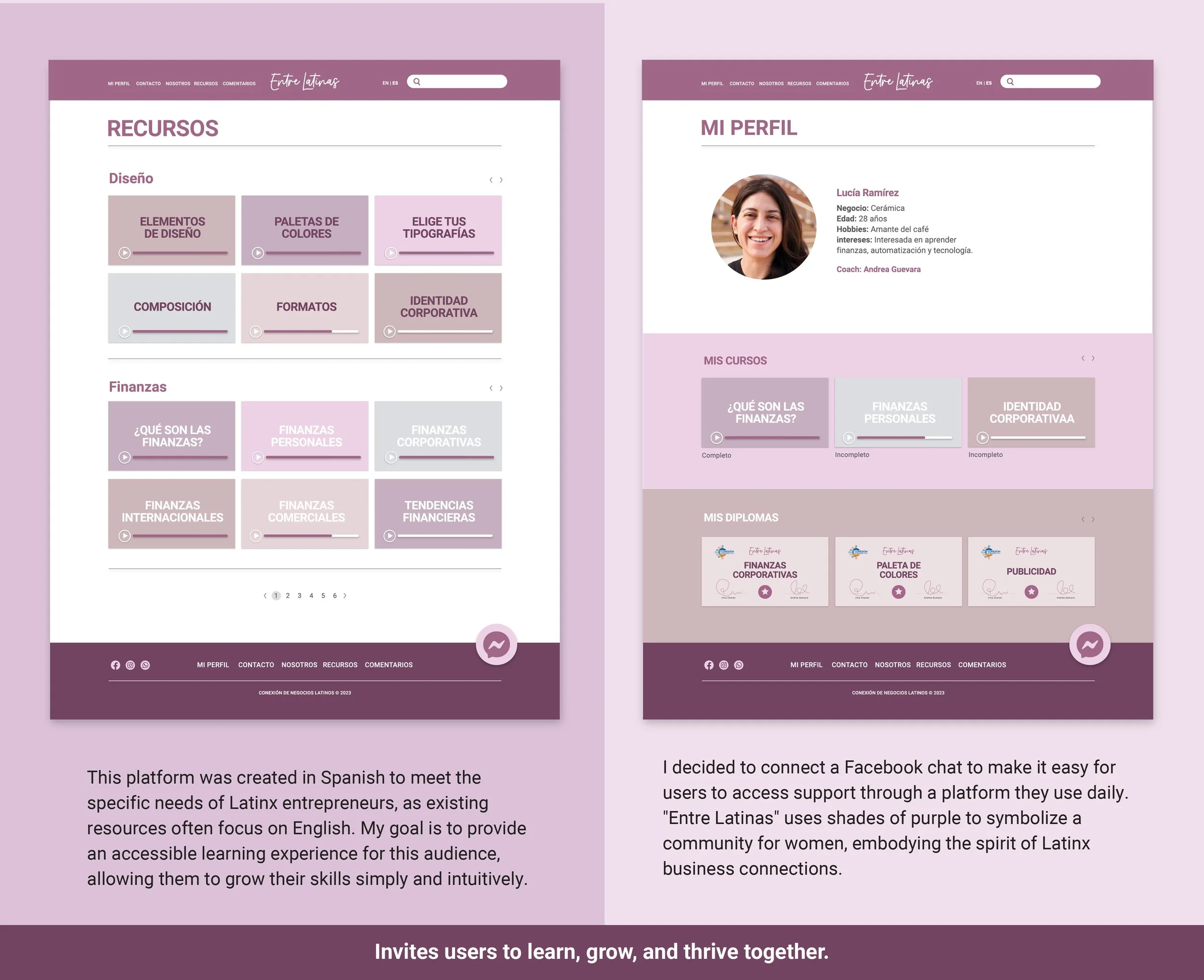 Design can support future generations of Latin American entrepreneurs by fostering community-centered digital spaces that encourage learning, confidence, and long-term growth. By positioning community at the core of the experience, the platform creates a welcoming entry point for entrepreneurs who may feel excluded from traditional business support systems.