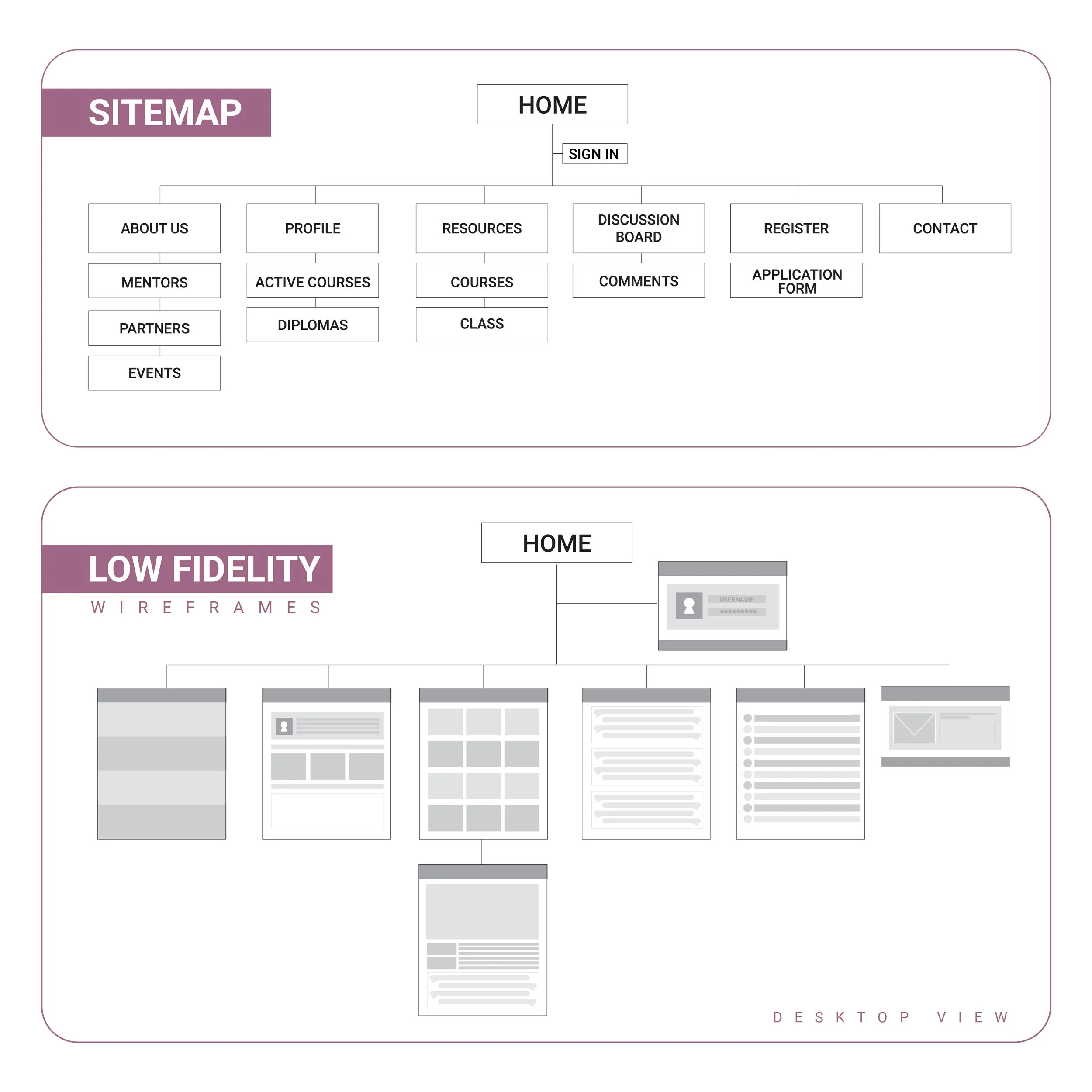 Information architecture, user flows, wireframes, and a high-fidelity prototype for mobile and desktop, within a two-month timeline.